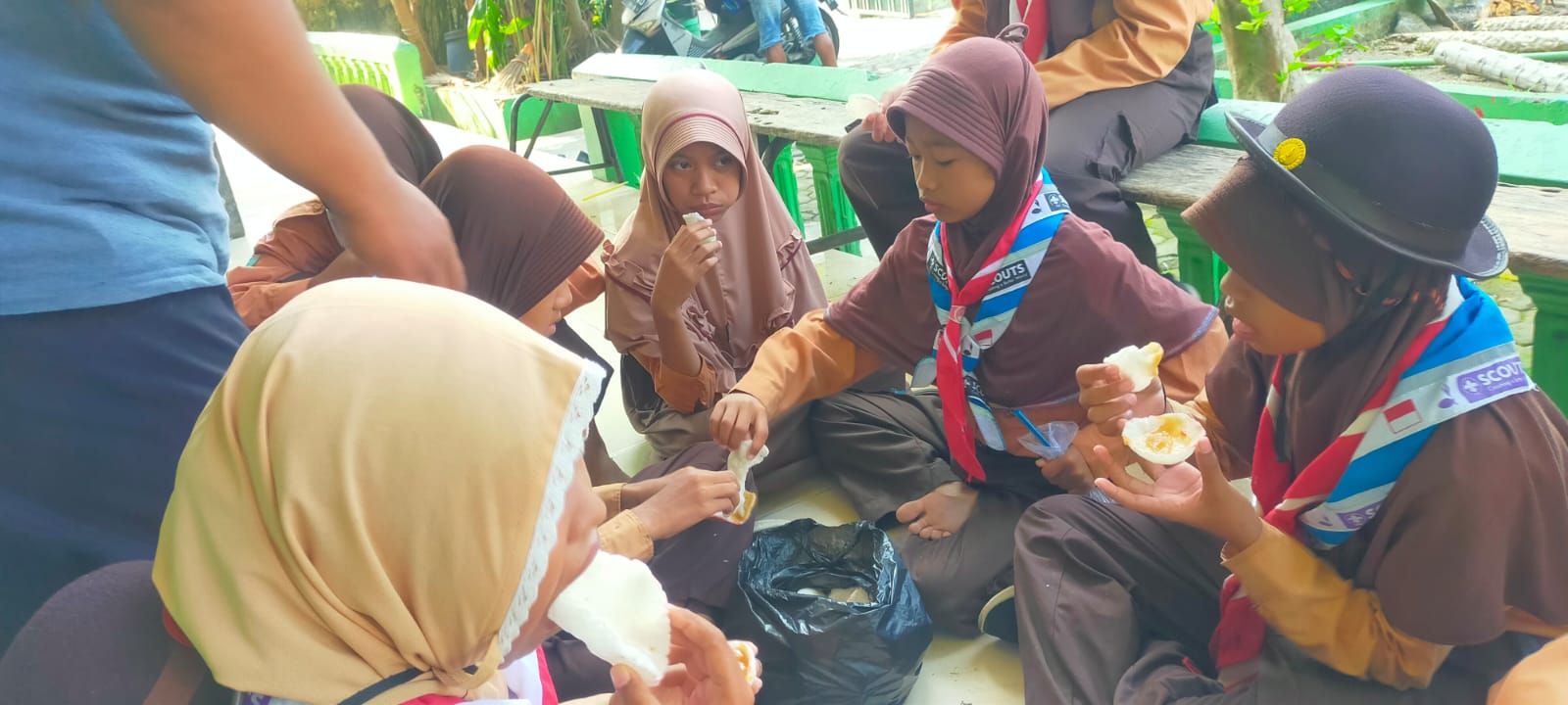 Selepas Dari Permainan BENTENG - Bentengan Seluruh Siswa / Siswi SMP PGRI 6 Surabaya Menikmati KRUPUK PASIR ( KRUPUK UPIL ) Pemberian Dari KAK LASMIATI ,S.Pd Selaku Pelatih Pramuka Dimana Dalam Kesempatan Ini Penulis Menikmati sambil MINUM SE GELAS KOPI WHITE